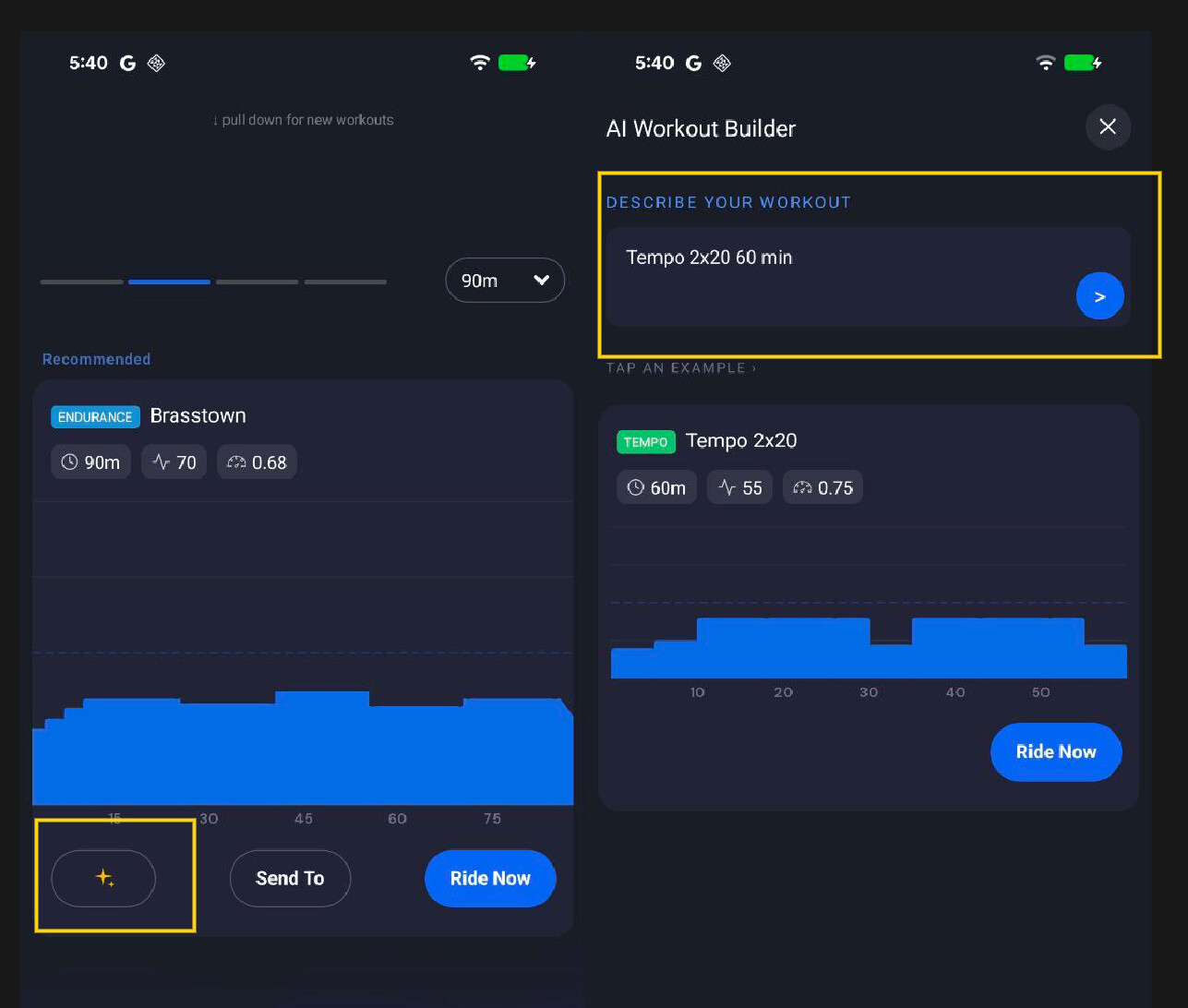 On the today tab in our app, we added a little AI feature for paid users. That you can just quickly generate a workout and ride it. If people want send to, to be able to send this to other platforms, we can do that as well or add it to your library. We also can add it to the website.