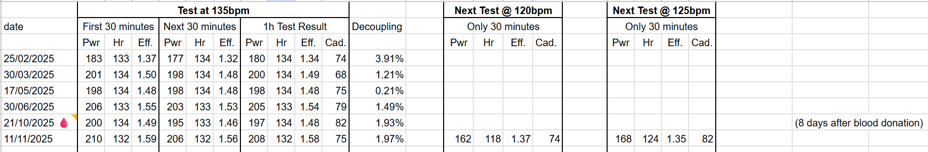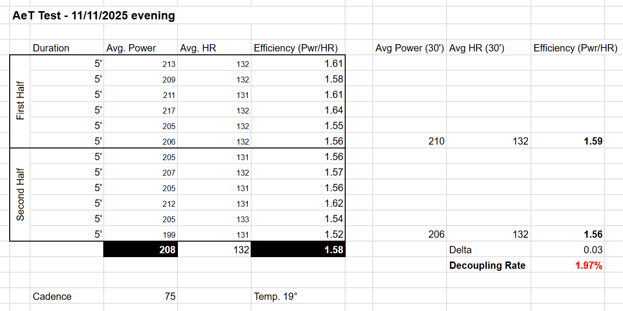 I’ve just ended a 2h45min indoor workout for my AeT / MAF test, and here the results: