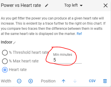 CSV data is available, see an example below. 2024 is on the left and 2025 is on the right. There are weird dips in some spots, it depends HOW you were collecting those minutes, was it recovery after intervals, etc…