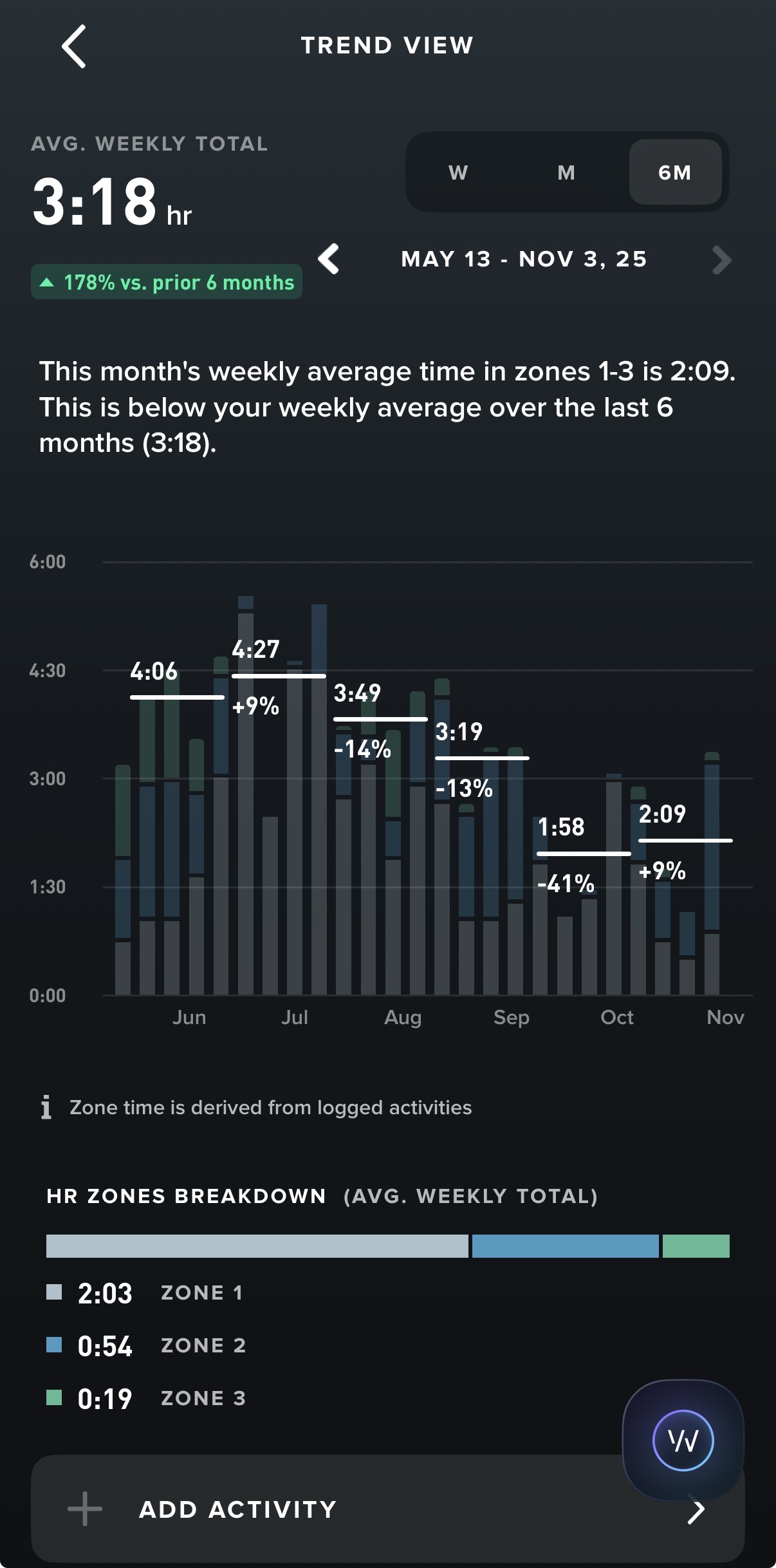 This are my last 6 month. As you can see there is a recent drop linked to a flu. I don’t exercise when i am sick.