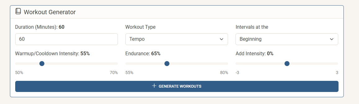 Iâve programmed the progression steps for all kind of types. , but can update these progressions for each type or new types by downloading/uploading just a json file. It uploads directly to intervals library and from there I can create my specific 4 week plan with these workouts. My library is now full of workouts with different durations and different intensities and progression levels. Creating that UI for me, was a useful task for the AI ![]()