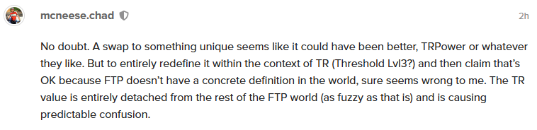 The summary is that TR believes that for the vast majority of its users, the number one way TR can make them faster is to raise their FTP.