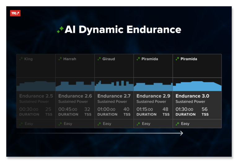 Now users can set the upper time limit (5 hours is the maximum on the drop down list) for their endurance rides and TR AI will decide how long / hard a ride to prescribe. The intention being to gradually increase the duration throughout the plan towards the maximum.