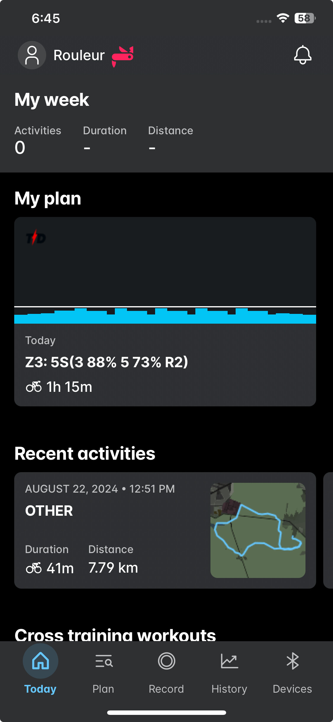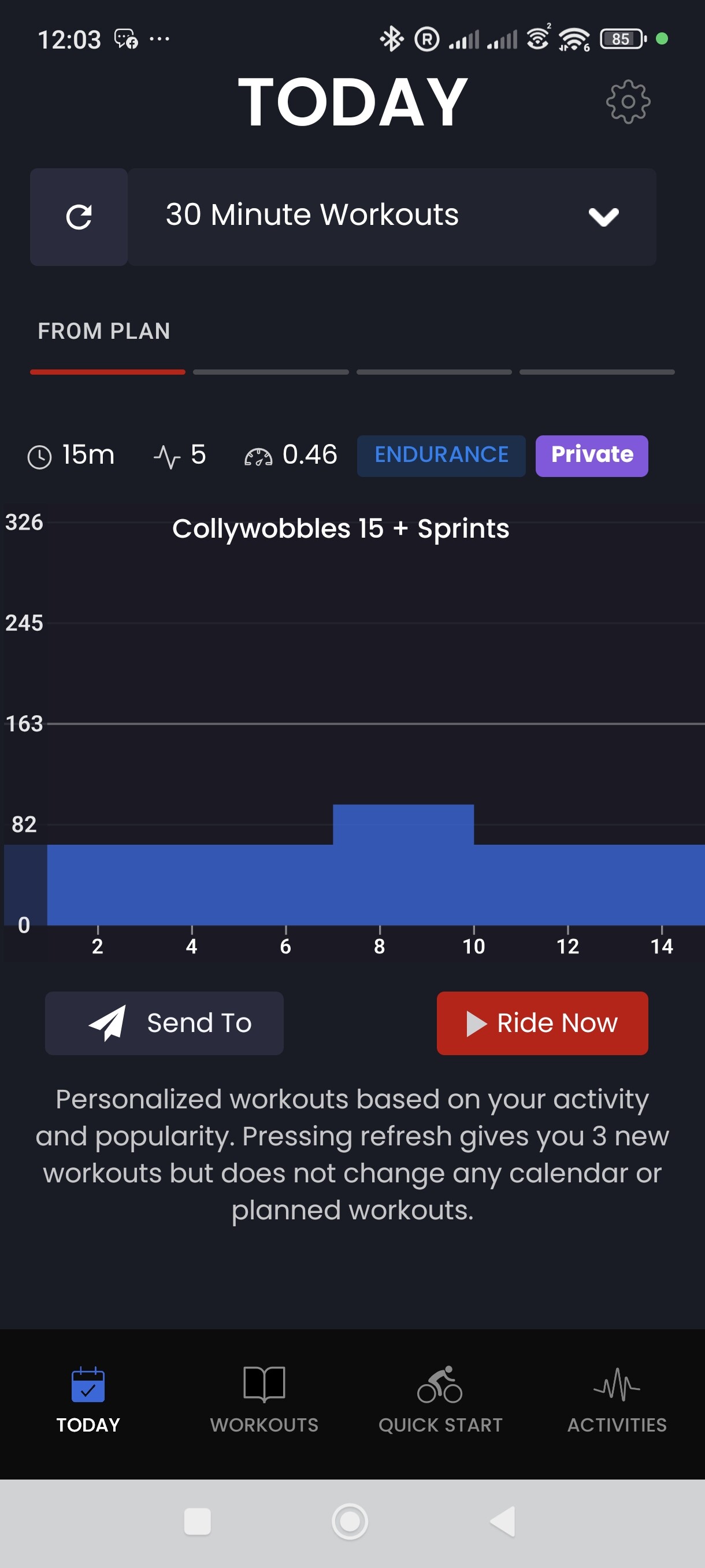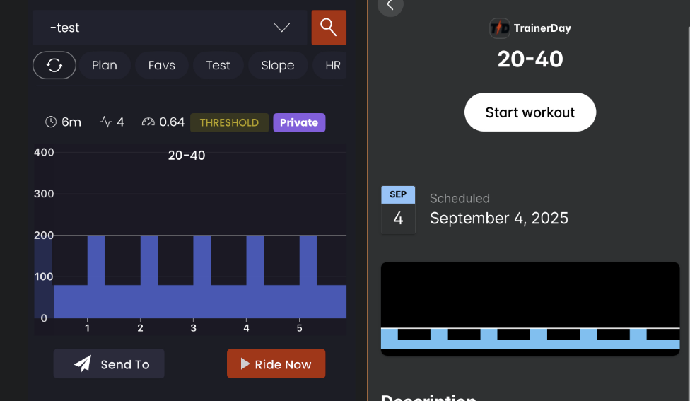 And on my phone, here’s the Planned ride for today
