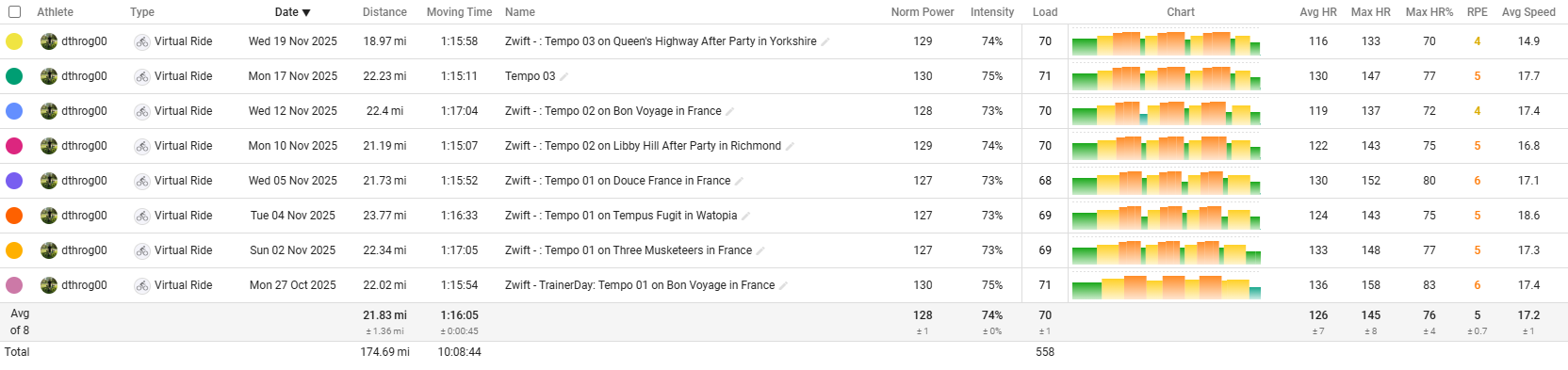 I’m doing Tempo 01 again tonight as planned. I modified the workout plan per earlier comments in the thread and I think I have it dialed now.