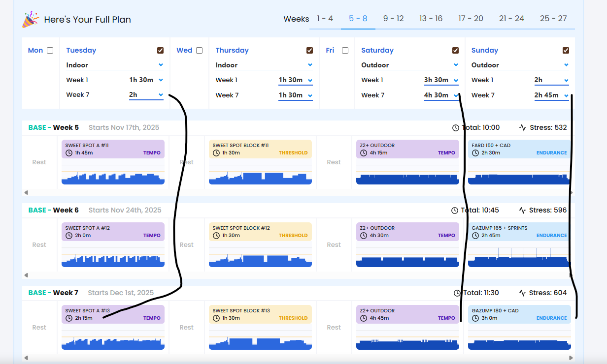 When I set the duration limits when customising the plan it does not align to the longest workout in the block. It seems to add an additional 15mins to the final workouts in the block?