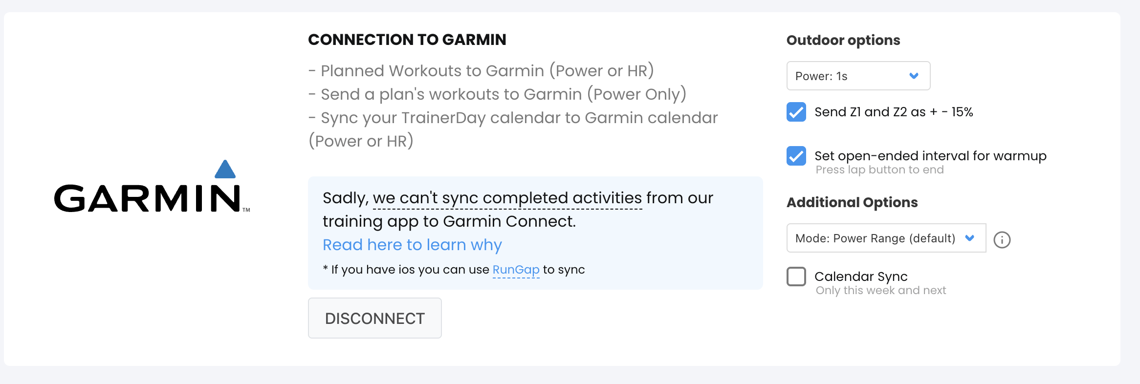 So, basically, if I want to have control on what you send to Garmin I should always send my workouts as indoor and disable the +15% for Z1/Z2 to have control.