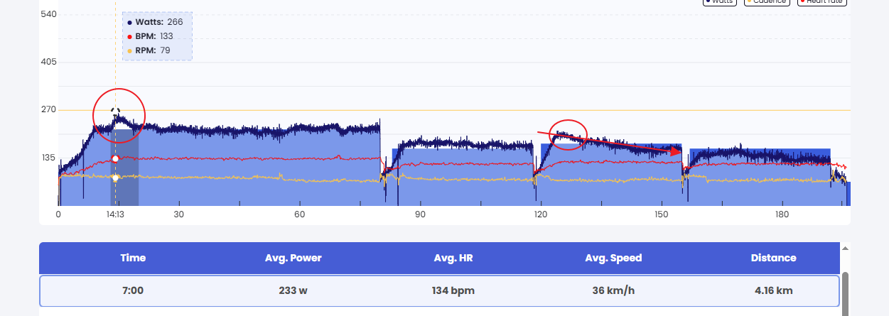 I always did like this, if you can check my previous workouts (pasted in previous comments). I try to follow a “natural” cadence approach, pushing it a bit more when I’m fresher in the first part of the 60 minutes AeT test. My natural cadence tends to be lower when I’m more fatigued.