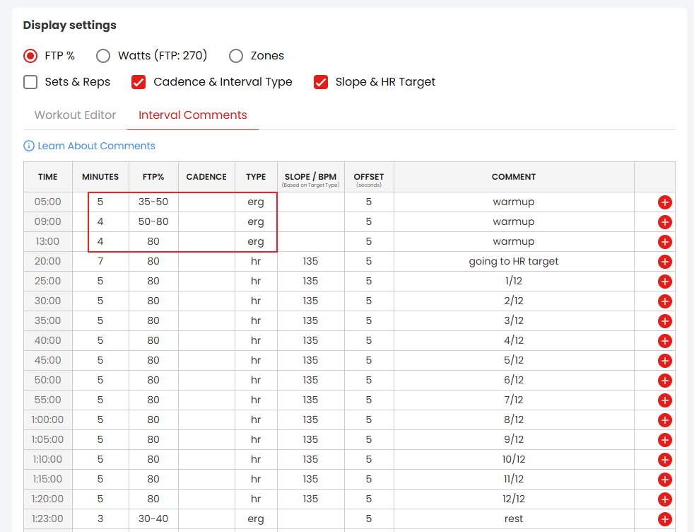 e.g. the first 3 minutes that gets me established at around the target HR, only going as high as 129