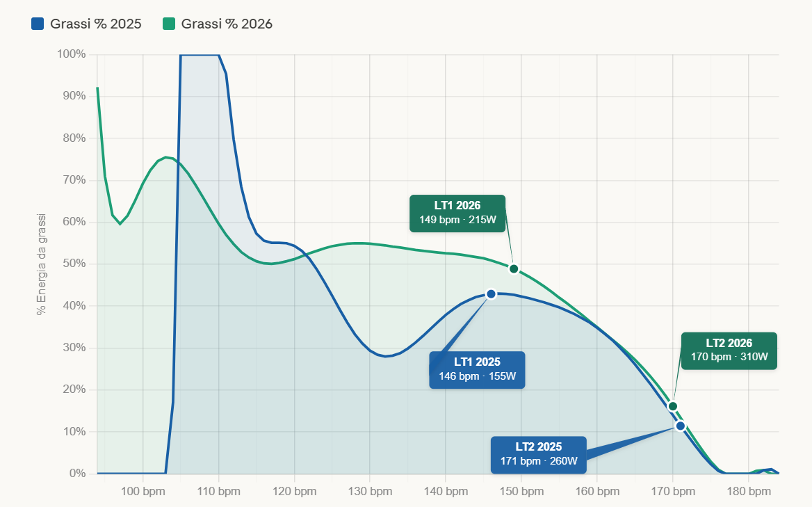 @Alex over last year my FTP moved from around 260w (LY) to around 293w (this year). But the thing I like more is the progress on fat usage.
