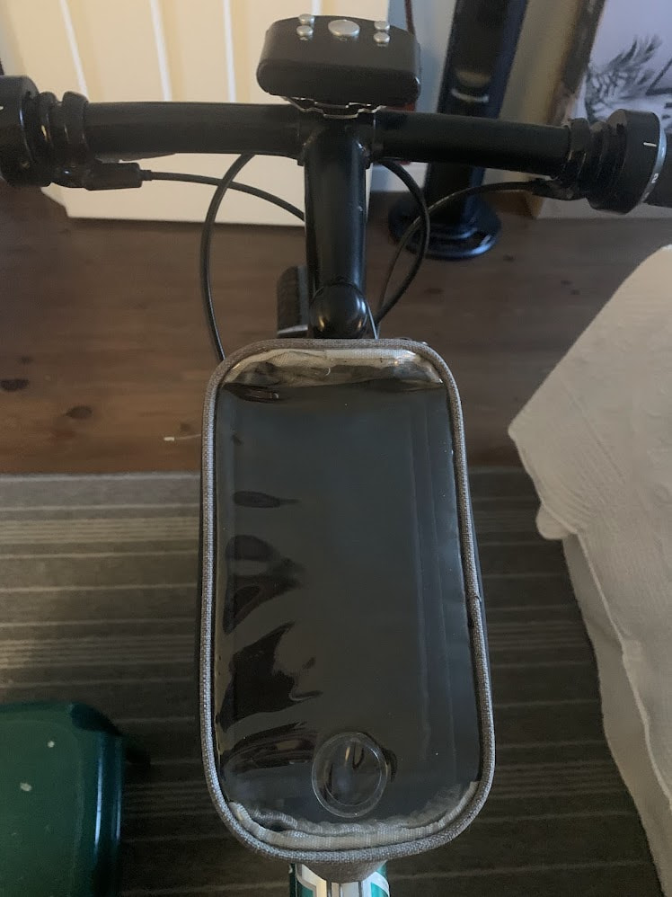 I have my iPhone in a waterproof top tube case so it is impervious to sweat. Not that I work up a sweat, (not yet anyway). I have a fan blowing on my face to keep it dry.