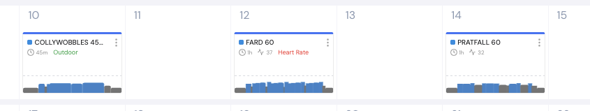 Okay, this is fixed. On the calendar, we’re showing the outdoor colors all the time now but I do put text for outdoor and heart rate, which you can see below.