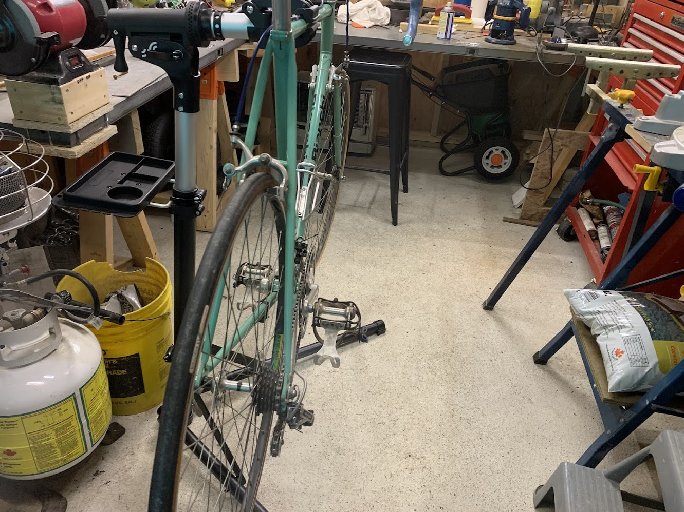 This way i could have a permanent setup upstairs without having to drag my road bike up the stairs for each training. Singlespeed because of budget restrains.