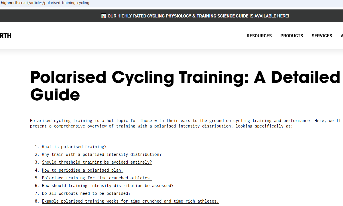 Highnorth has a good page on Polarised Cycling Training (that’s how we spell it over here!) that attempts to deal with a lot of the recent points in this thread