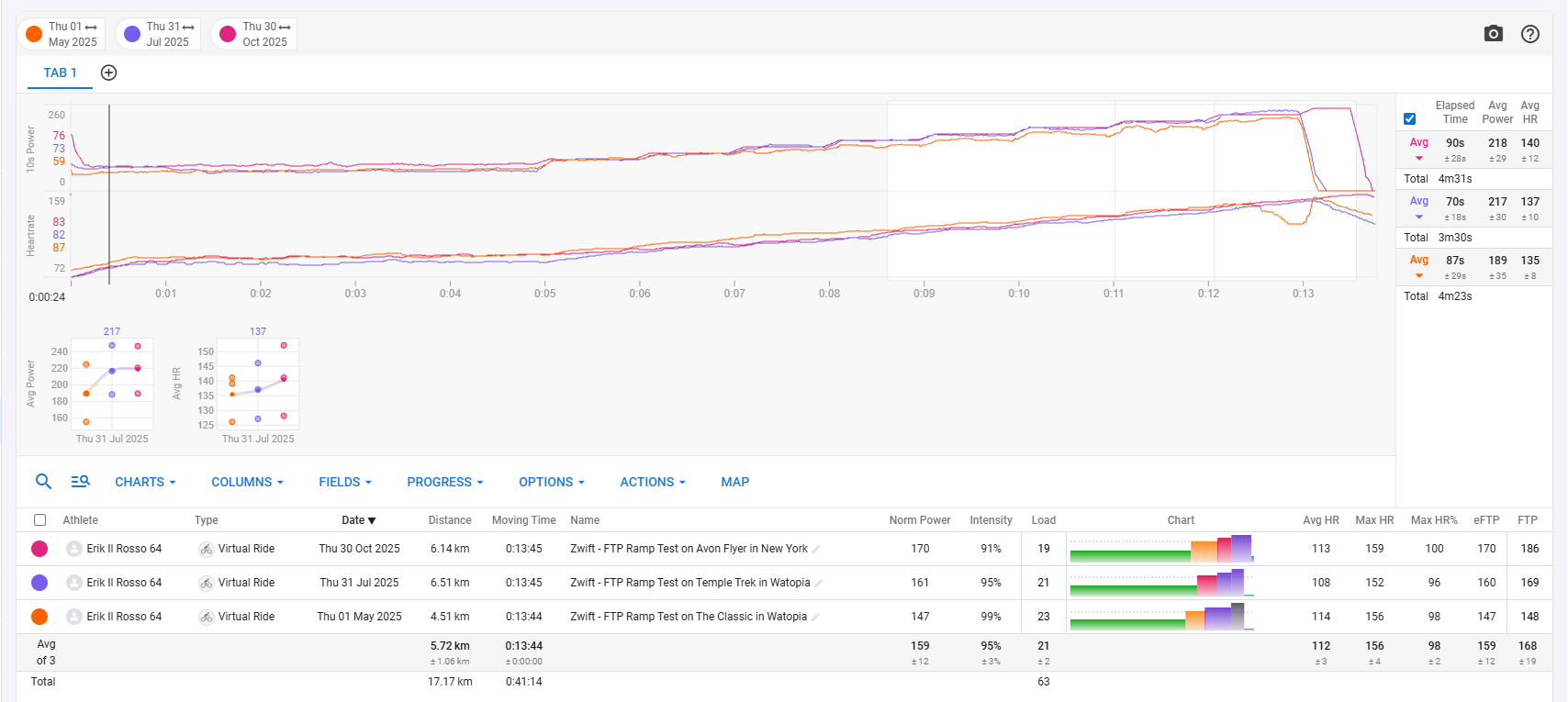On 30 Oct 2025 your ramp test FTP was 186, up 17 from your ramp test on 31 July 2025