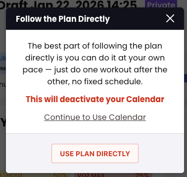 That’s the calendar, but you can have different plan sources active. It doesn’t mean it’s active just because you have workouts on it. We allow people to use TrainingPeaks for their plan or Intervals ICU. There’s lots of sources for what your current plan is.