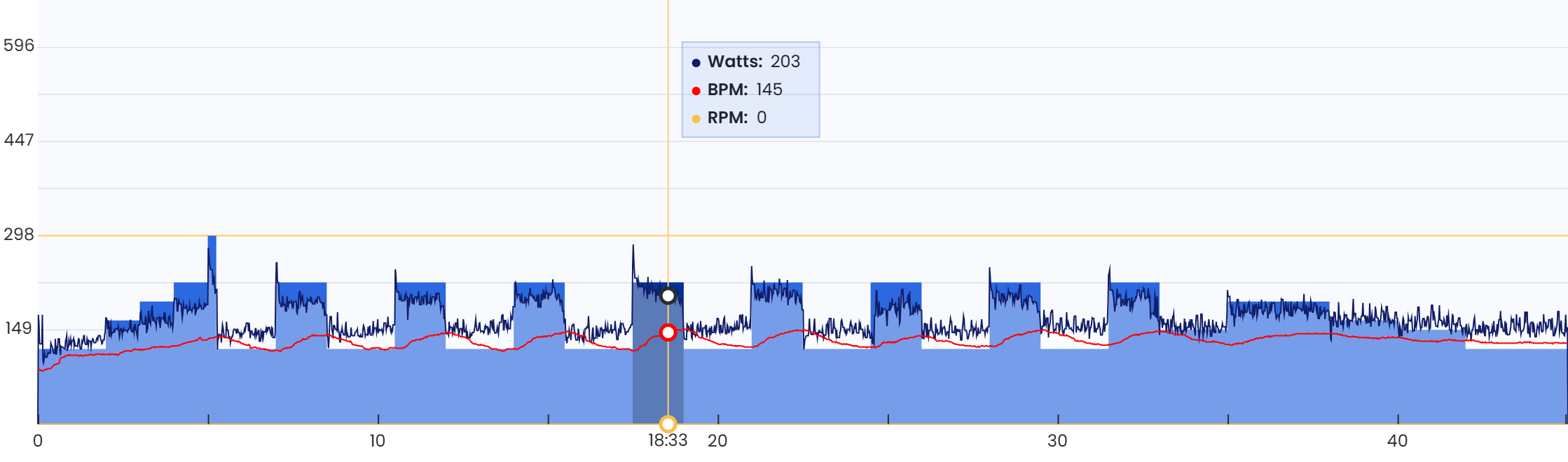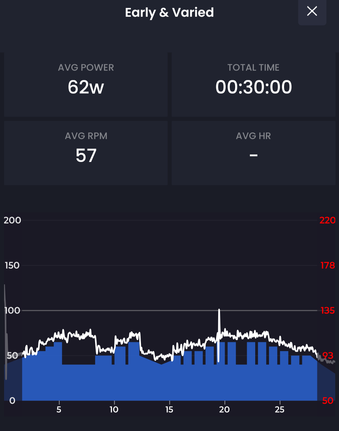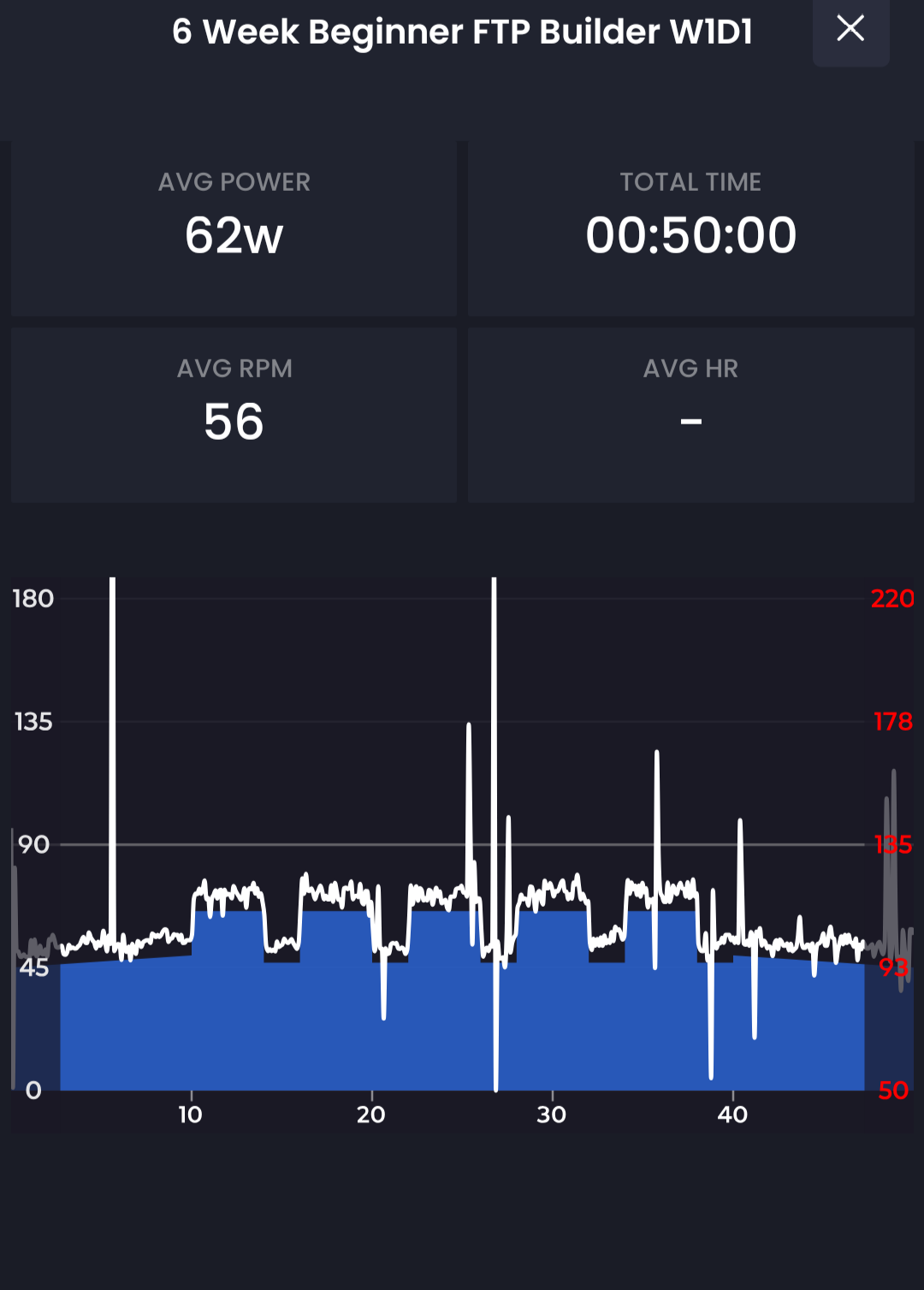 Just one funny thing; Notice that the ERG did not adjust the resistance downward in many places, best example being where it skipped right over that big trough at the beginning… Almost as though it wasn’t obeying “down” commands.