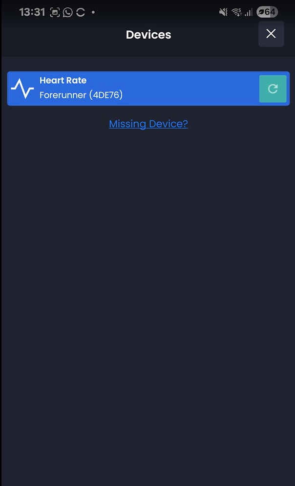Yesterday I udated the app and tried to add my forerunner again as hr source. But its not working yet, I do get a refresh button, but it stays orange and can’t add it: