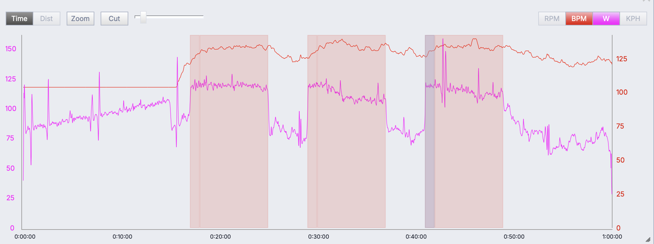 So instead of smoothly continuing from the 80% FTP power, it dropped power and took a long time to ramp back up to maintain 135 bpm. The feel of the interval was totally different.