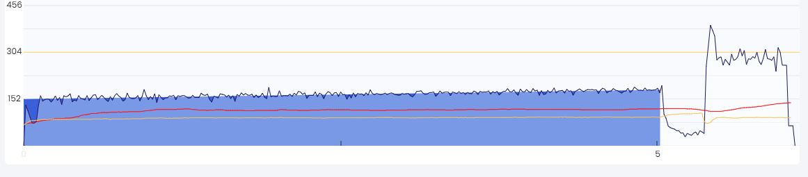 This reminded me why I thought it was important to have that ERG warmup before switching to HR+ mode: so that the increase in HR during the warmup does not interfere so much with the algorithm later on.