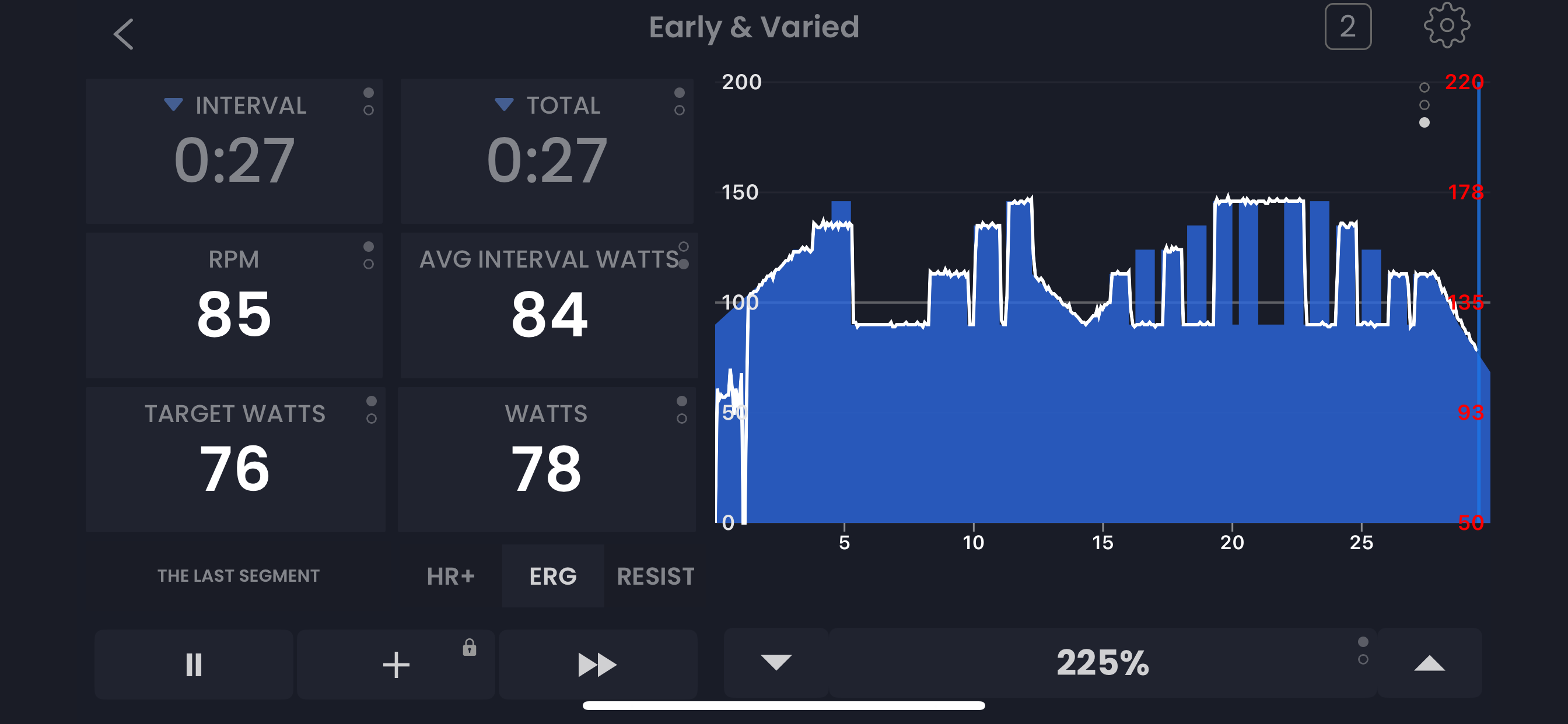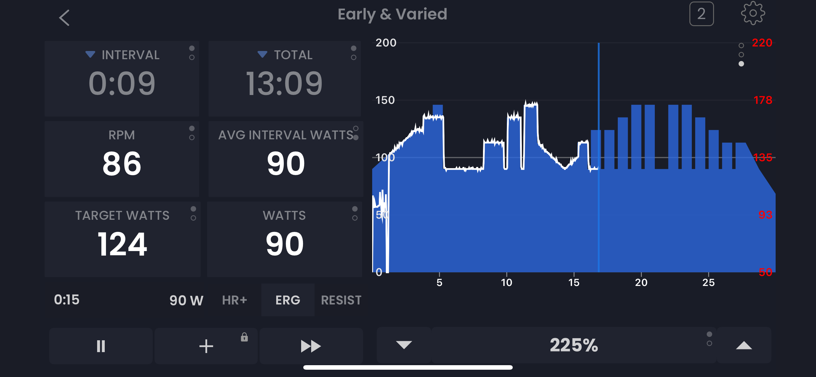 I saw this behavior on Wednesday 9/24 the day before I saw the zero Watts issue. Disregard the inconsistent power at the beginning of the workout, the Power Source was set to the wrong device.