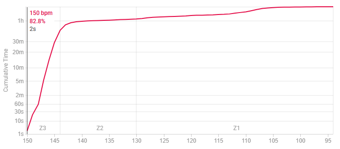 This chart shows the HR cap was fully respected. I touched 150 for 2 seconds, but did not go over.