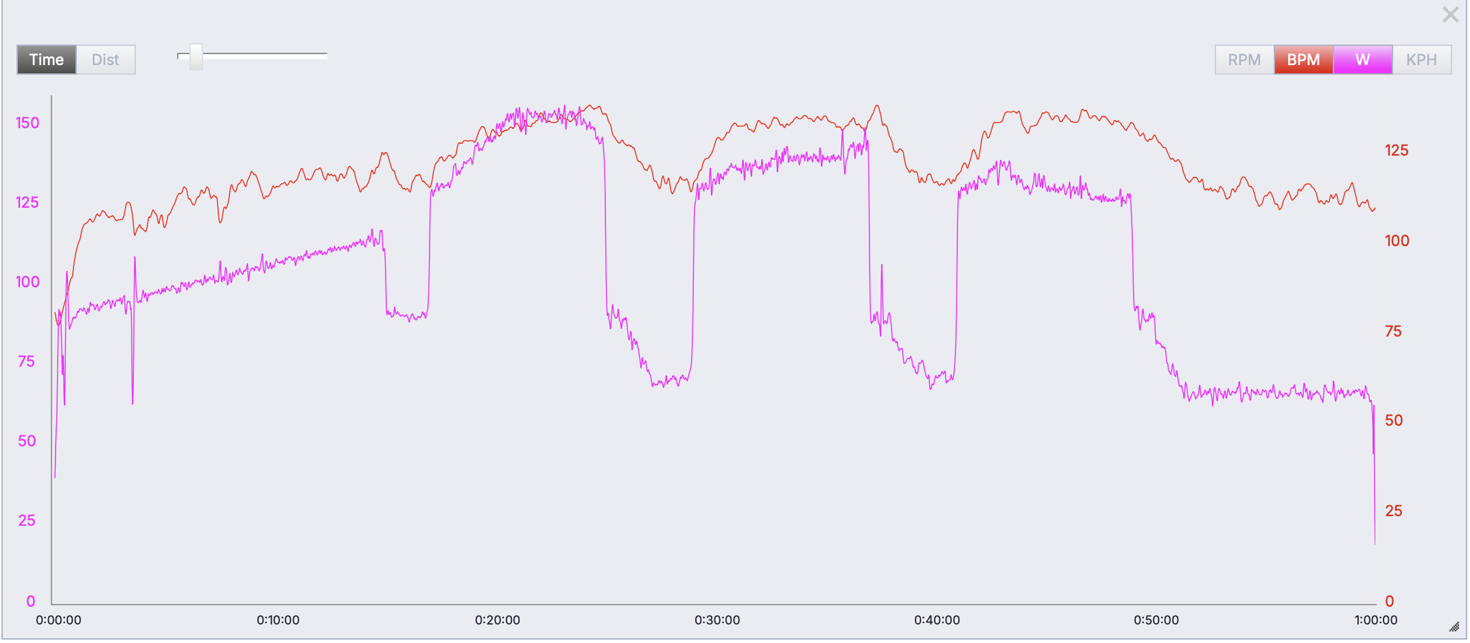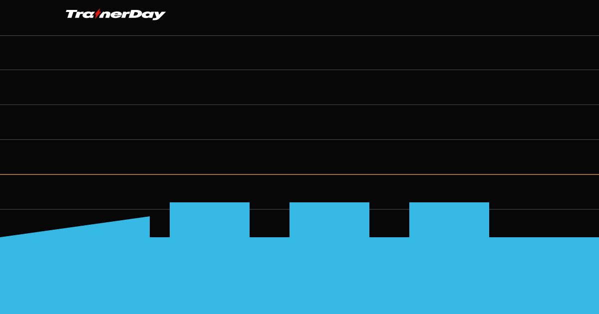 • The first minute of each rest is 55% FTP in ERG mode to stabilize power before returning to HR mode