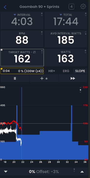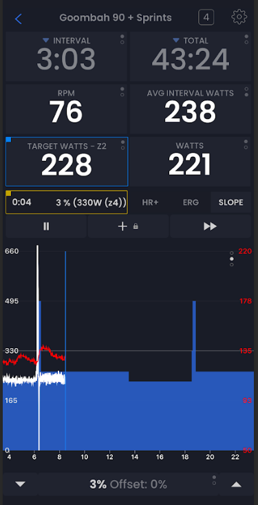 Resolvi instalar a versão 7.9.3, comecei o treino novamente, o smart trainer estava ok no modo Slope… mas o gráfico estava todo errado. Não sei o que aconteceu.