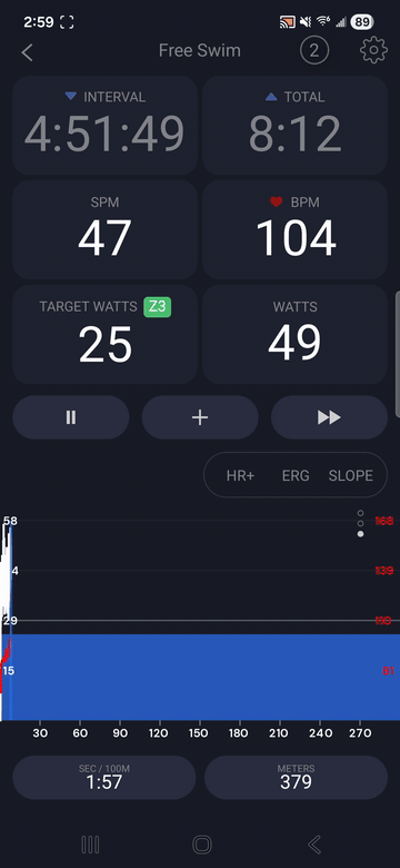 This doesn’t happen on my other set up where I’m using an Android Tablet and a Wahoo Kickr. I haven’t gone through many lengths to find out what set up combinations cause this issue and I’m not sure how to reliably reproduce this except just turning on my workout on my phone/SwimErg set up.